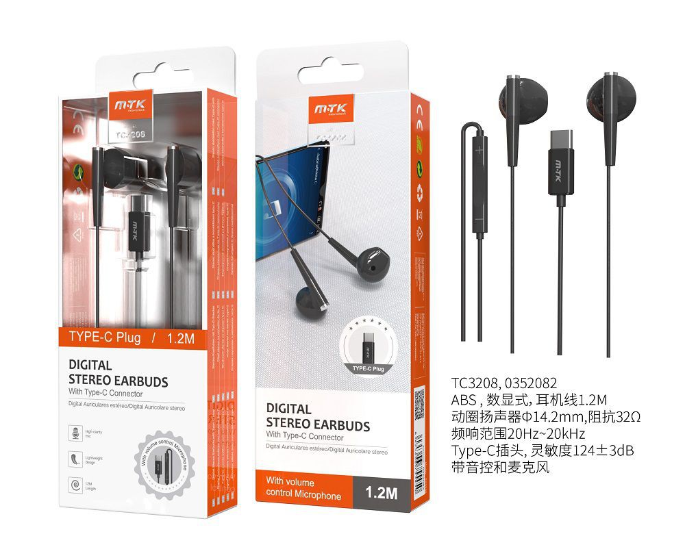 TC3208 NE Auricular TYPE-C Jill con Microfono y Boton multifuncion, 1.2m, Negro