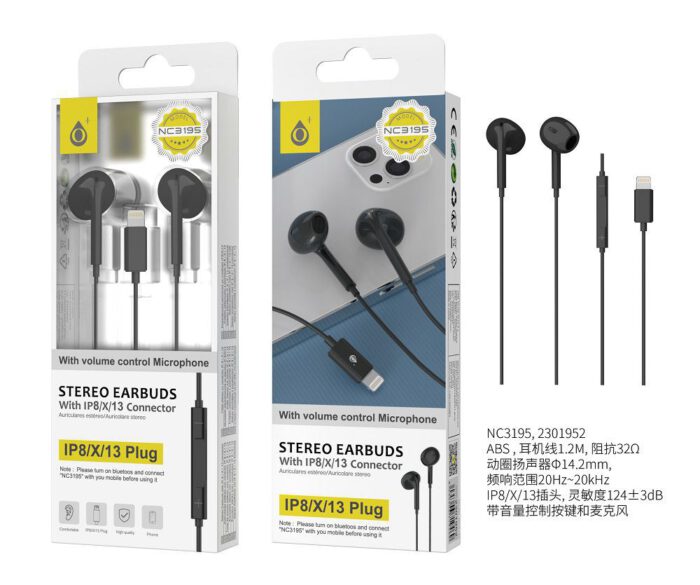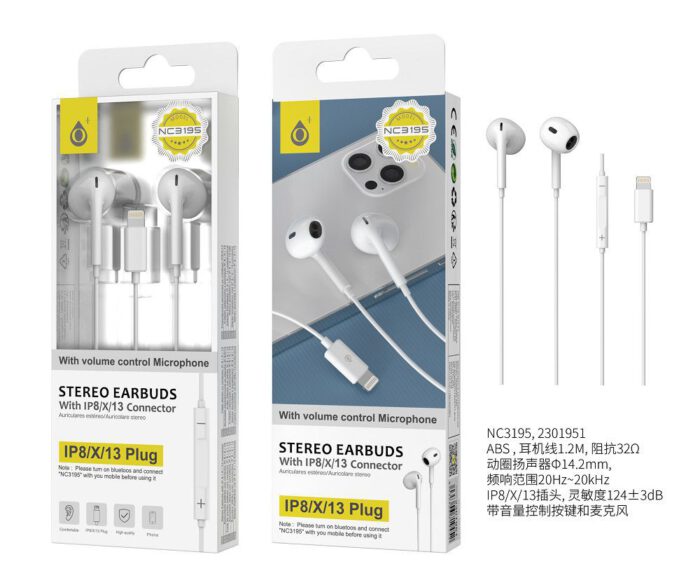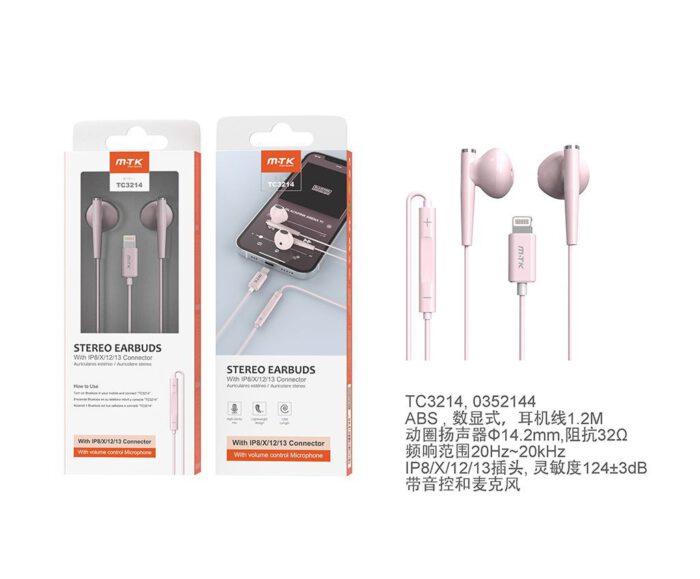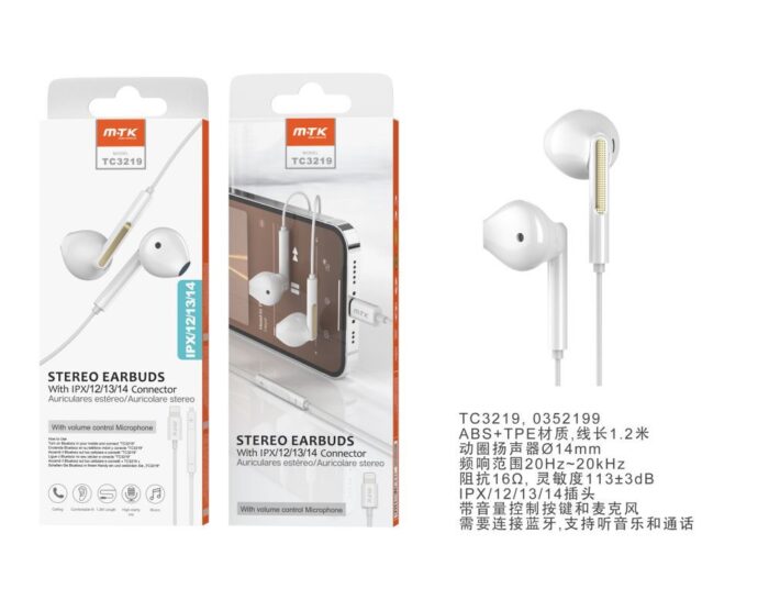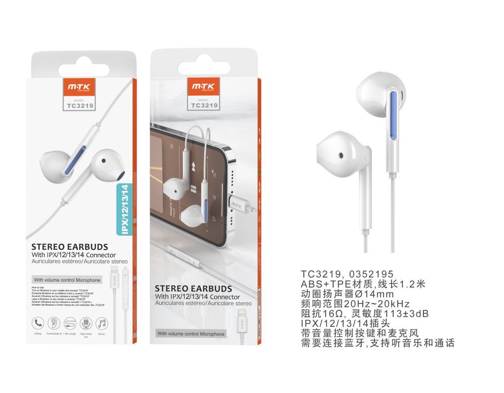 TC3219 RJ Auricular Lightning Sylvie con Microfono y Boton multifuncion, (Necesario Activar Bluetooth), Soporta llamada y Musica, Cable 1.2m, Blanco+Azul