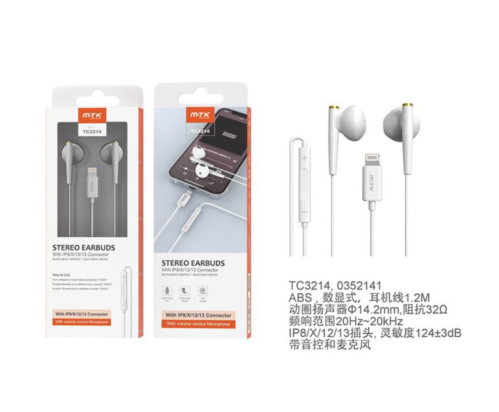 TC3224 BL Auriculares Lightning Belk con Microfono y Boton multifuncion, para Iphone X/11/12/13/14, Soporta Musica y Llamada, Cable 1.2M, Blanco