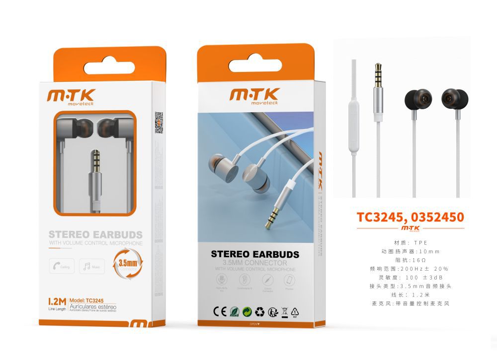 TC3245 BL luxury Auricular Kay con Microfono y  Control de Volumen, Soporta llamada y Musica, Cable 1.2m, Blanco
