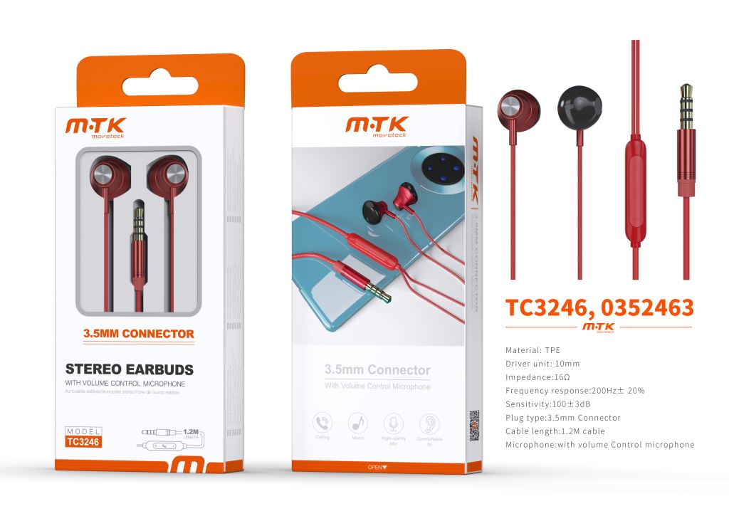 TC3246 RJ+NE luxury Auricular Orson con Microfono y Control de Volumen, Soporta llamada y Musica, Cable 1.2m, Rojo+Negro