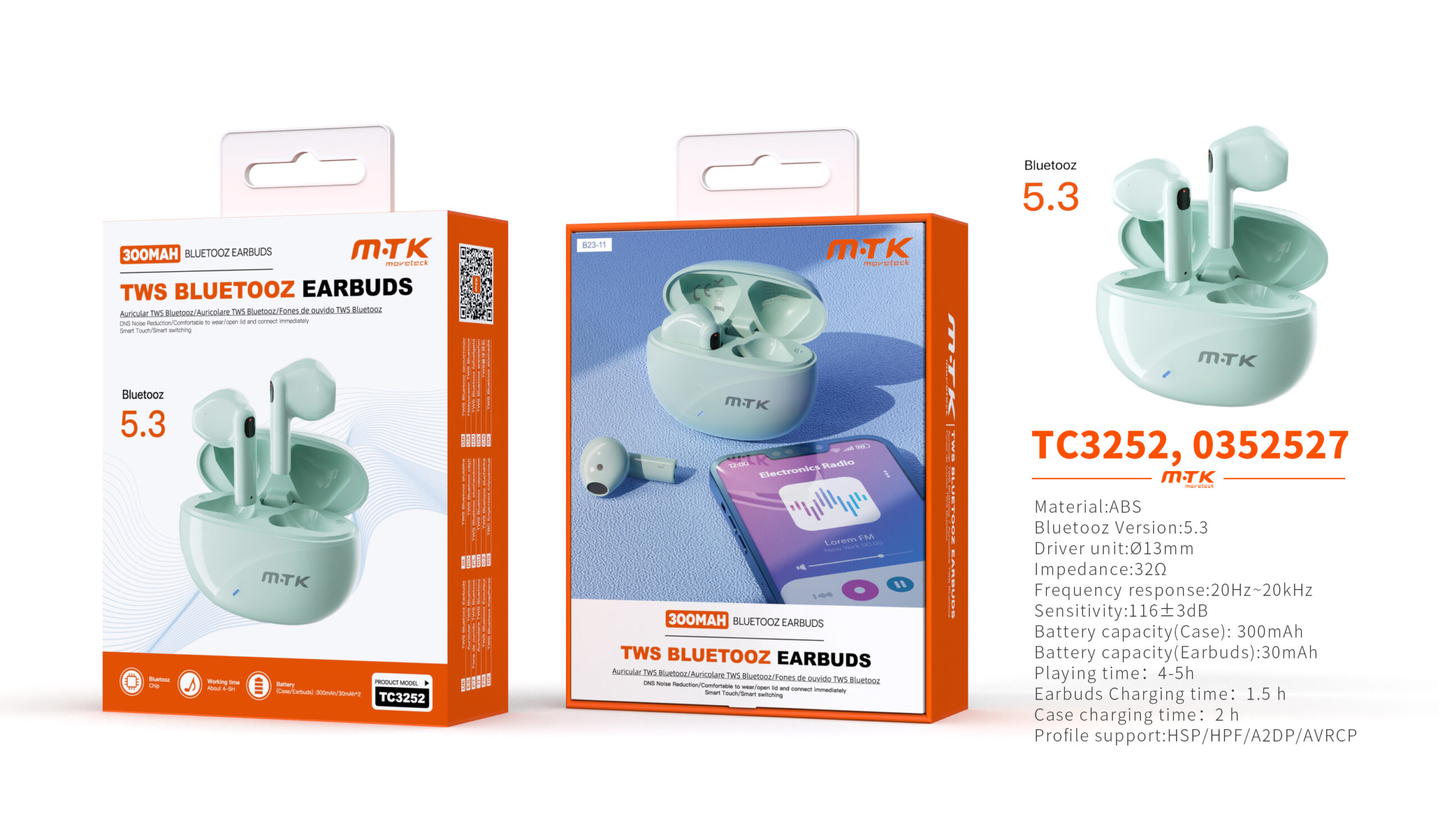 • TC3251 NE Auriculares TWS Bluetooth 5.3, Bateria (25mAh*2)Con Estuche Recargable 300mAh, Negro