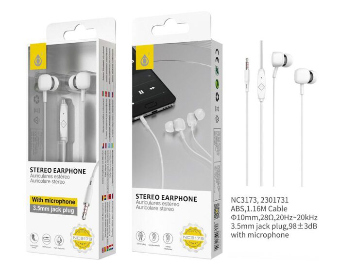 • NC3173 NE Auriculares con Microfono de alta calidad Namdi,Boton Multifuncion y Control Volumen, Longitud 1.16M,Negro
