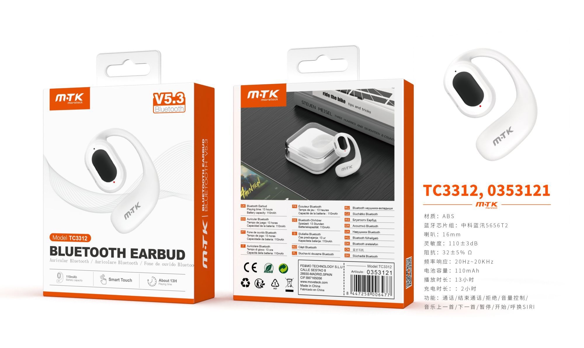 TC3312 BL Auriculares Bluetooth 5.3 Smart Touch, Bateria 110mAh, Blanco