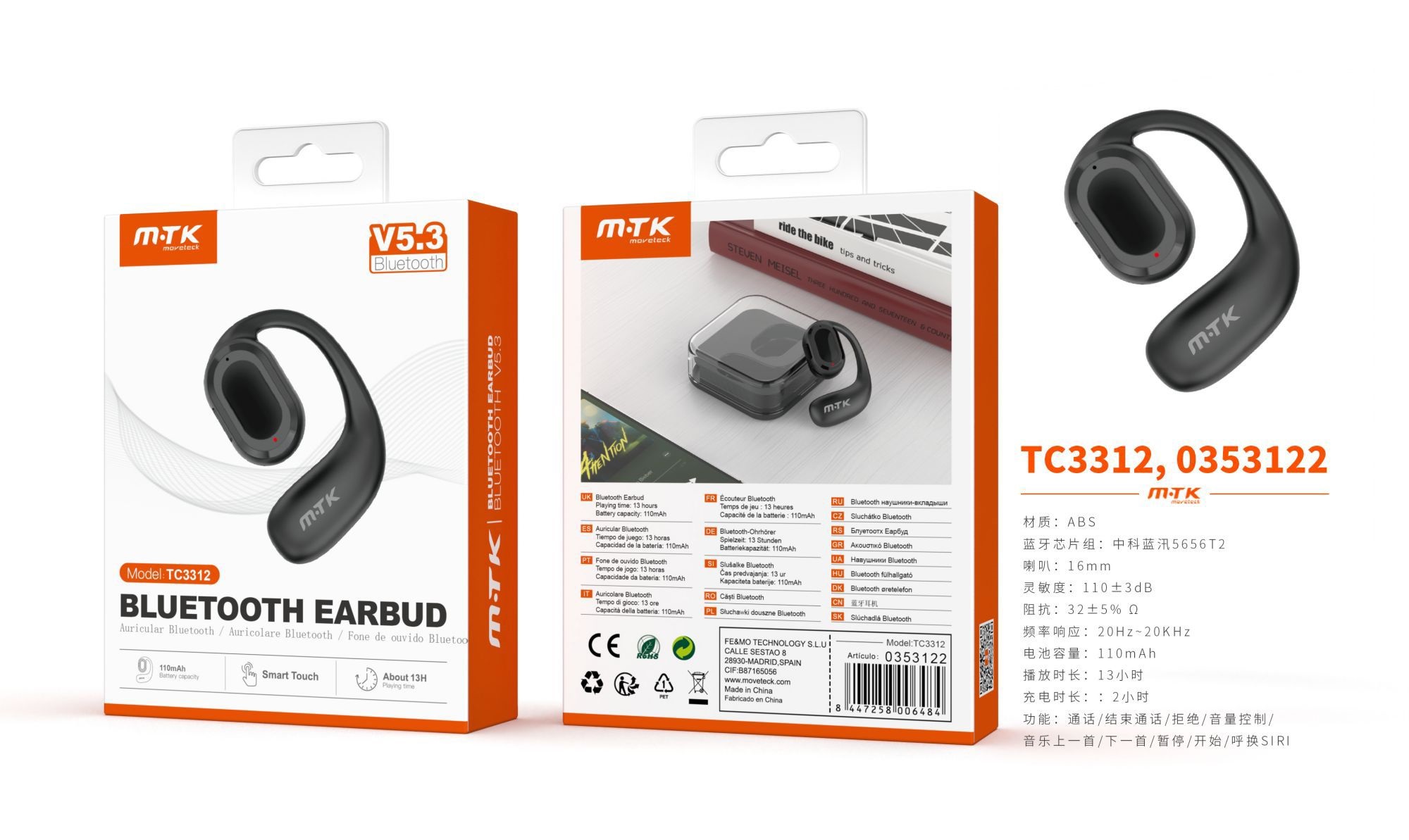 TC3312 NE Auriculares Bluetooth 5.3 Smart Touch, Bateria 110mAh, Negro