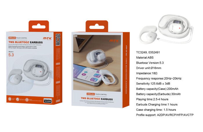 • TC3251 BL Auriculares TWS Bluetooth 5.3, Bateria (25mAh*2)Con Estuche Recargable 300mAh, Blanco