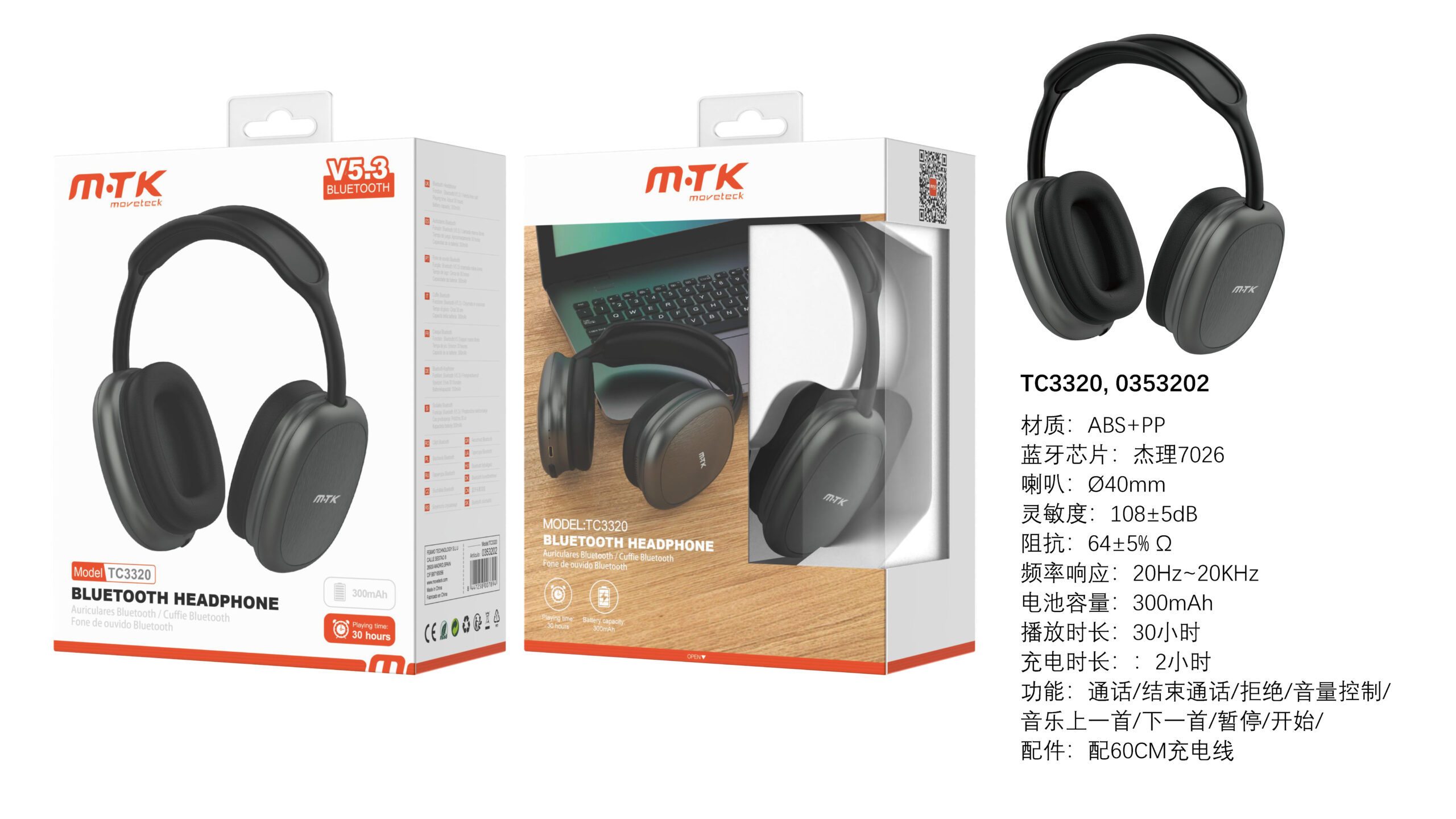 TC3320 Luxury NE+GR Auricular Bluetooth 5.3, 30 hora reproduccion, Soporta llamadas, Bateria 300mAh, Negro+Gris