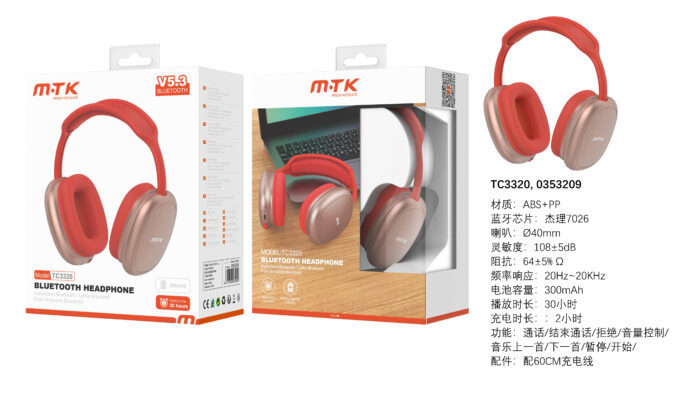 TC3320 Luxury RJ+OR Auricular Bluetooth 5.3, 30 hora reproduccion, Soporta llamadas, Bateria 300mAh, Rojo+Oro