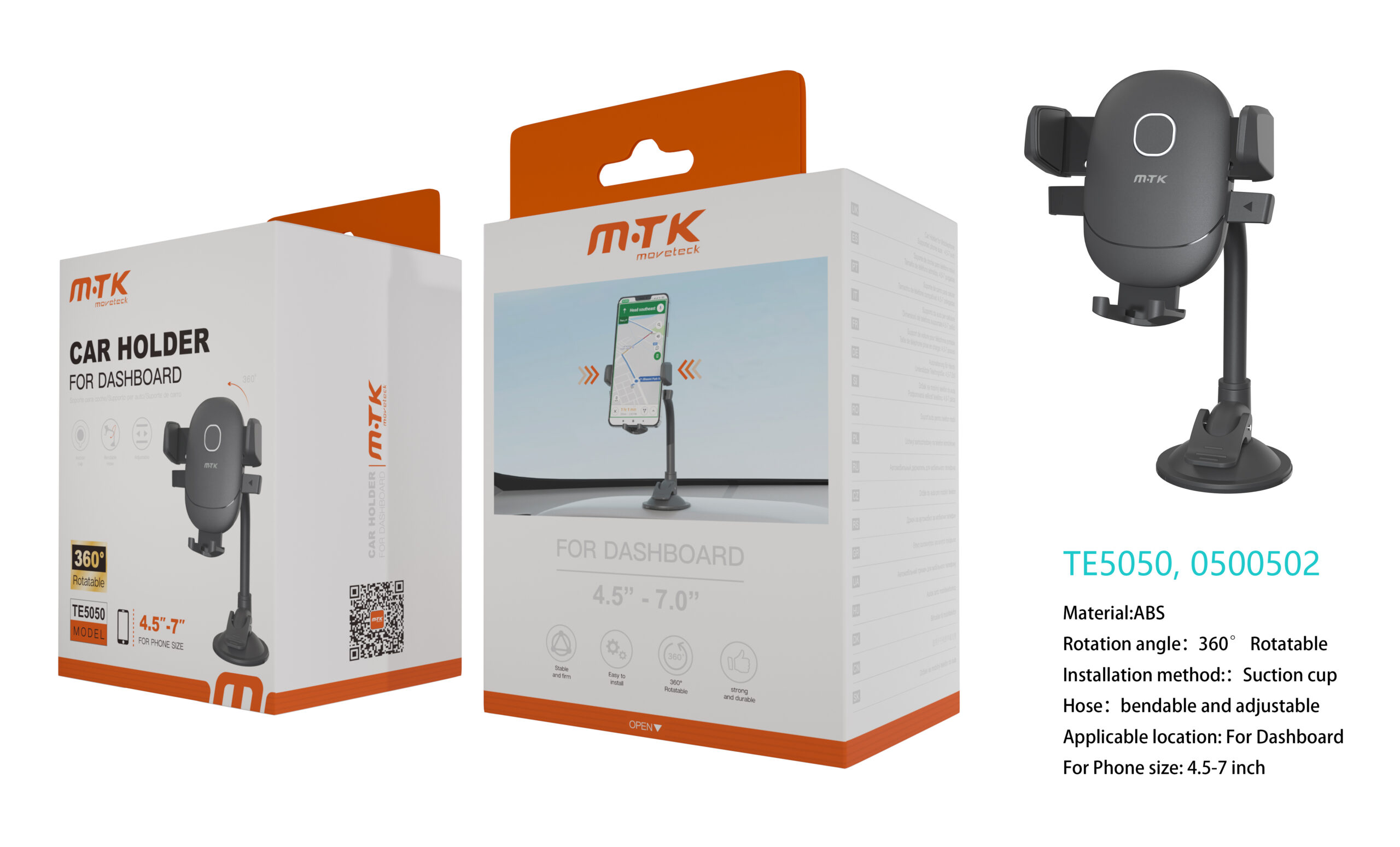 TE0505 NE Luxury Soporte  Universal de movil para Salpicadero y Parabrisas, Brazo flexible, 360° Giratoria, 4.5-7 Pulgadas, Negro