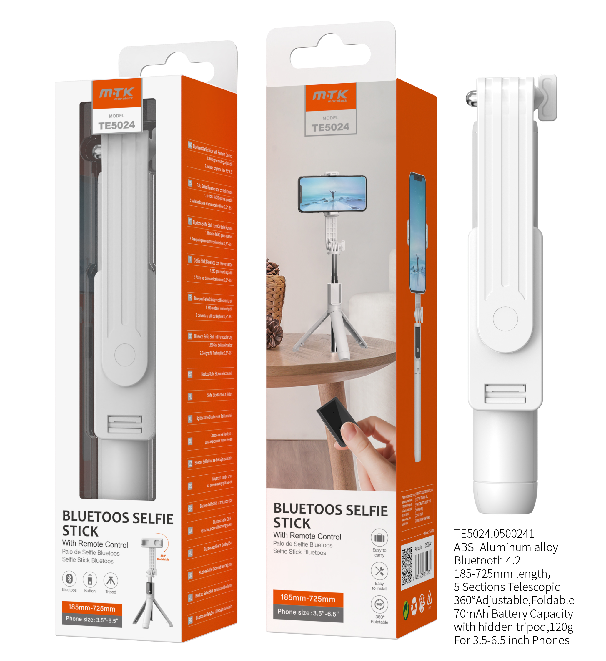 TE5024 BL Palo Selfie Tripode flexible 360 Bluetooth Para movil 3.5-6.5 Pulgadas,Blanco