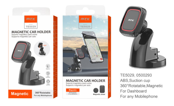 TE5029 NE  Soporte Universal de Movil  Magnetico para Salpicadero y Parabrisa de coche, ajustable 360°grado, Negro
