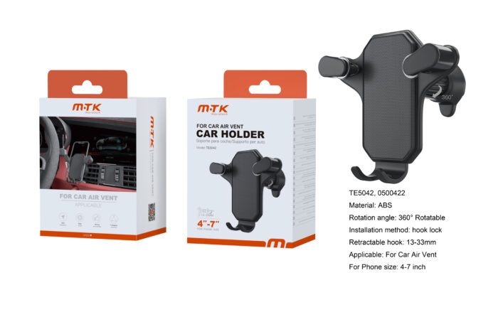 TE5042 NE Luxury Soporte Universal Airvent de coche para movil 4-7 Pulgadas, retractil 13-33mm, 360° Rotacion, Negro