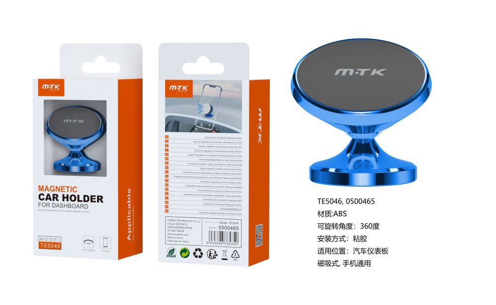 TE5046 AZ Soporte Universal de Movil  Magnetico para Salpicadero de coche ajustable 360°, Azul