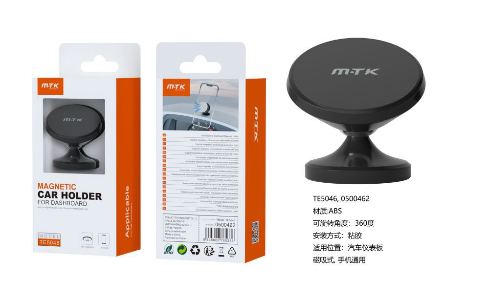 TE5046 NE Soporte Universal de Movil  Magnetico para Salpicadero de coche ajustable 360°, Negro