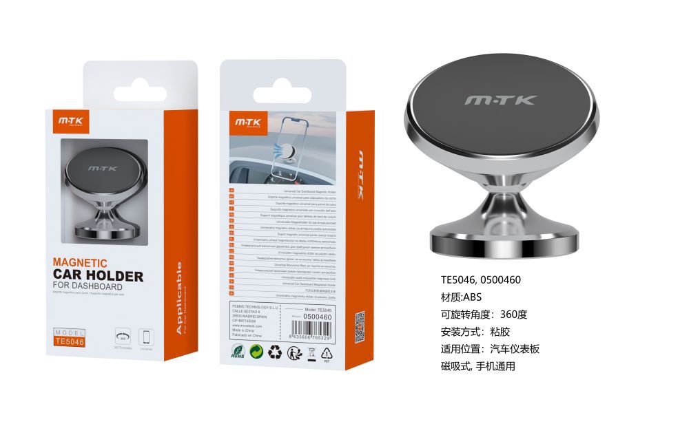 TE5046 PT Soporte Universal de Movil  Magnetico para Salpicadero de coche ajustable 360°, Plata