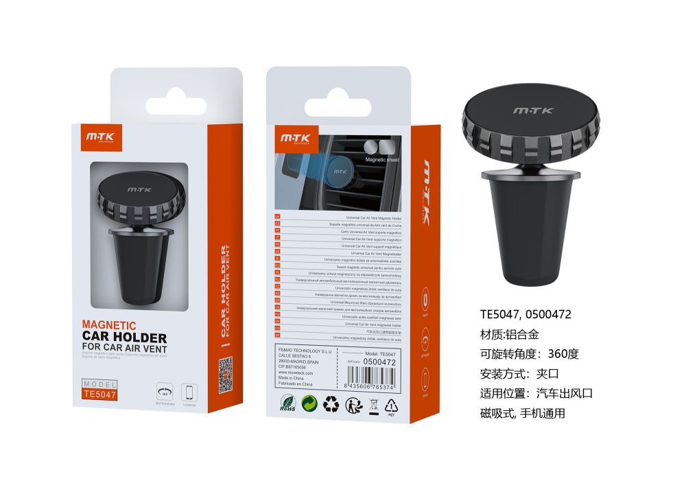 TE5047 NE Soporte de Aluminio Universal de Movil Magnetico para Airvet de coche ajustable 360°grado, Negro
