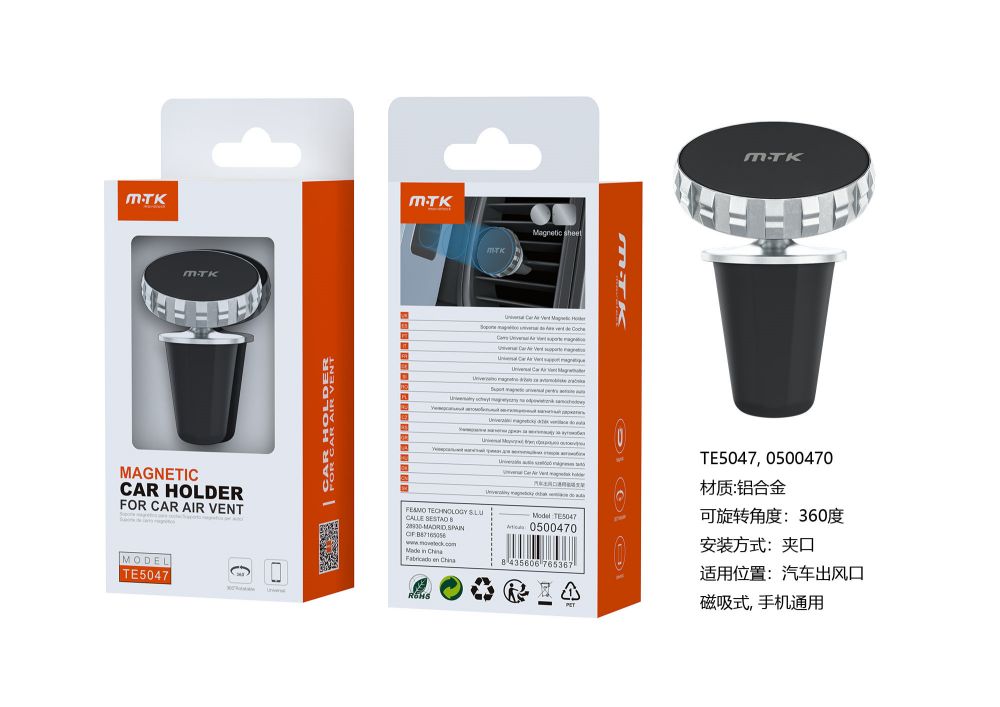 TE5047 PT Soporte de Aluminio Universal de Movil Magnetico para Airvet de coche ajustable 360°grado, Plata