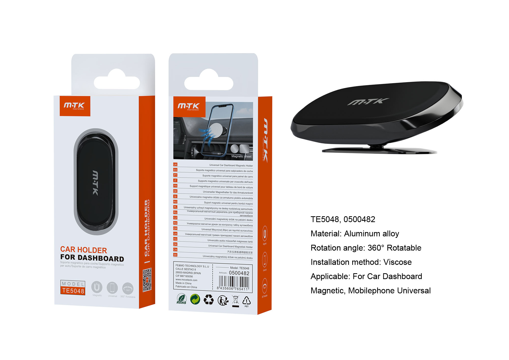 TE5048 NE Soporte Universal de aluminio Magnetico de Movil  para Salpicadero de coche, Ajustable 360°, Negro
