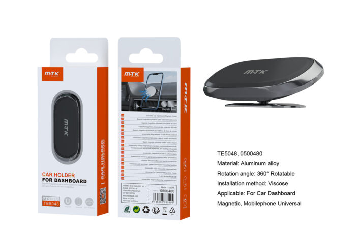 TE5048 PT Soporte Universal de aluminio Magnetico de Movil  para Salpicadero de coche, Ajustable 360°, Plata