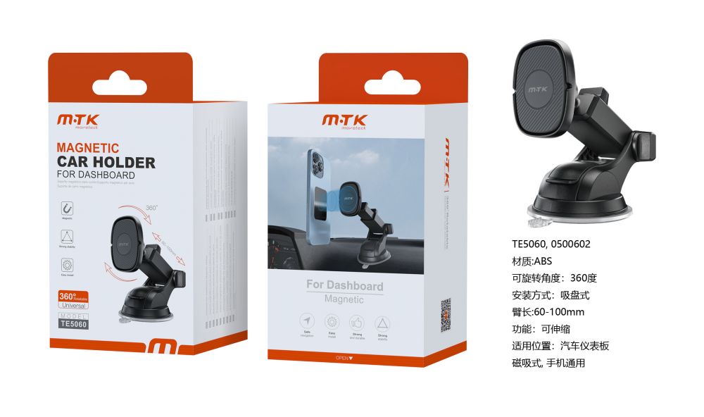 TE5060 NE Luxury Soporte universal de movil Magnetico para Salpicadero y Parabrisas , Brazo Extensible 60-100mm, 360° Giratoria, Negro