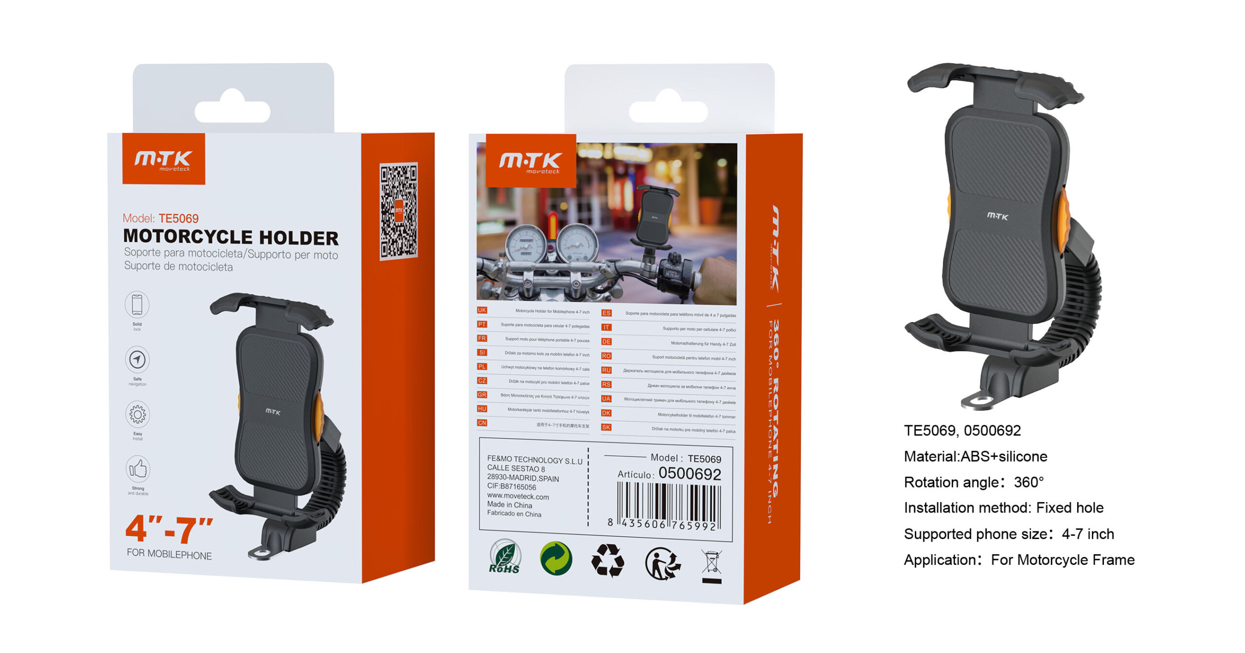 • TE5078 NE Soporte Universal de movil para Moto y Bici, 360° Rotacion, 4-7 Pulgadas, Negro