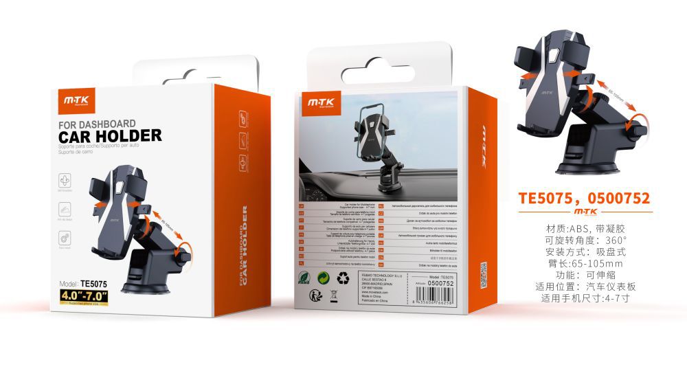 • TE5070 NE Soporte universal de movil para Salpicadero y Parabrisas , Brazo Extensible 90-140mm, 360° Giratoria ,Para Movil 4-7 Pulgadas, Negro