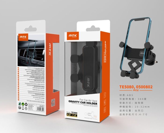 TE5080 NE Soporte Universal de Gravedad Airvent para movil 4-7 Pulgadas, retractil 10-32MM, 360° Rotacion, Negro