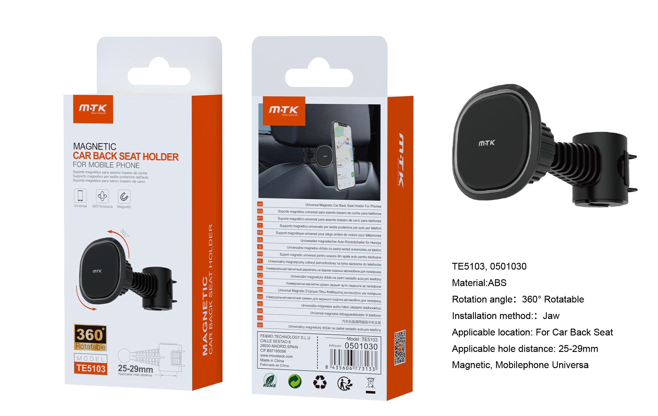 • TE5063 NE Luxury Soporte Universal de Movil Magnetico para Soporte Reposacabezas de coche, Brazo Extensible 110-140mm, Giro 360°grado, Negro