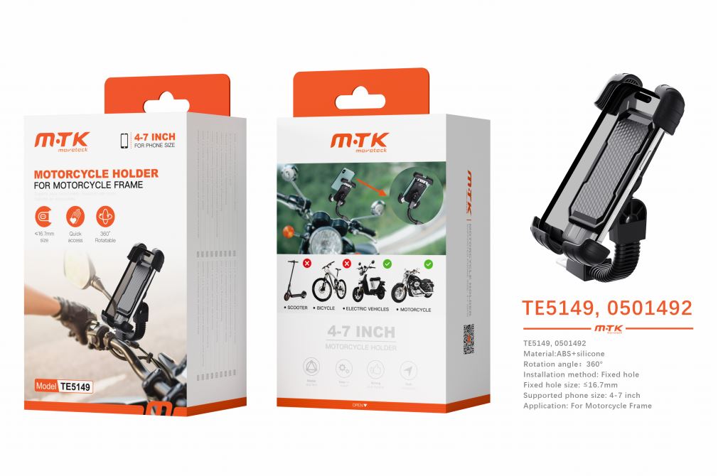 • TE5069 NE Soporte Universal de movil para Espejo Retrovisor de Moto, 360° Rotacion, 4-7 Pulgadas, Negro