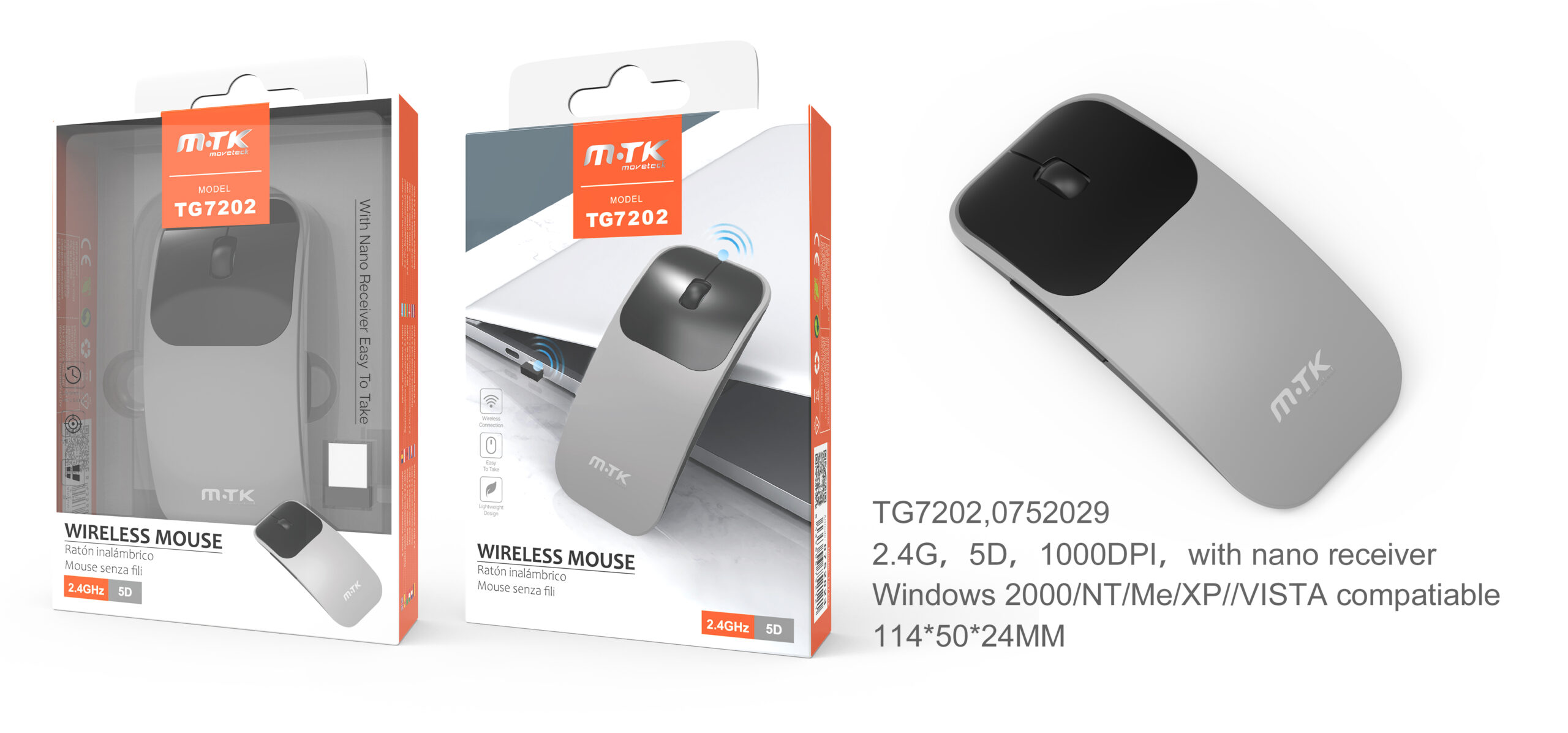 TG7202 GR Raton Inalambrico Banana, 2.4Ghz con 5 Botones, 1000 DPI, Negro y Gris