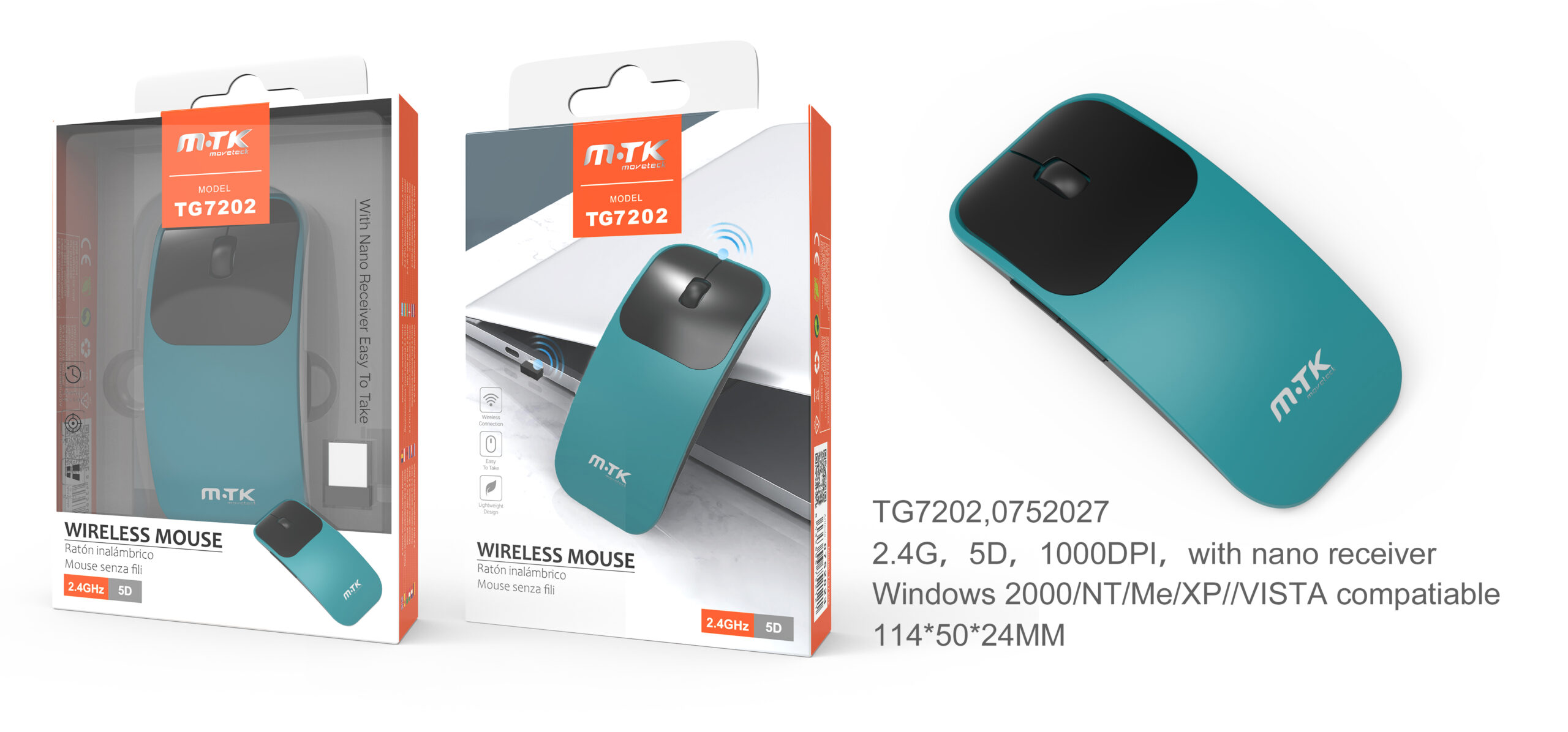 • NG6040 AZ Raton inalambrico Rubber, 2.4GHz, con nano receptor, 1000 DPI, Blue