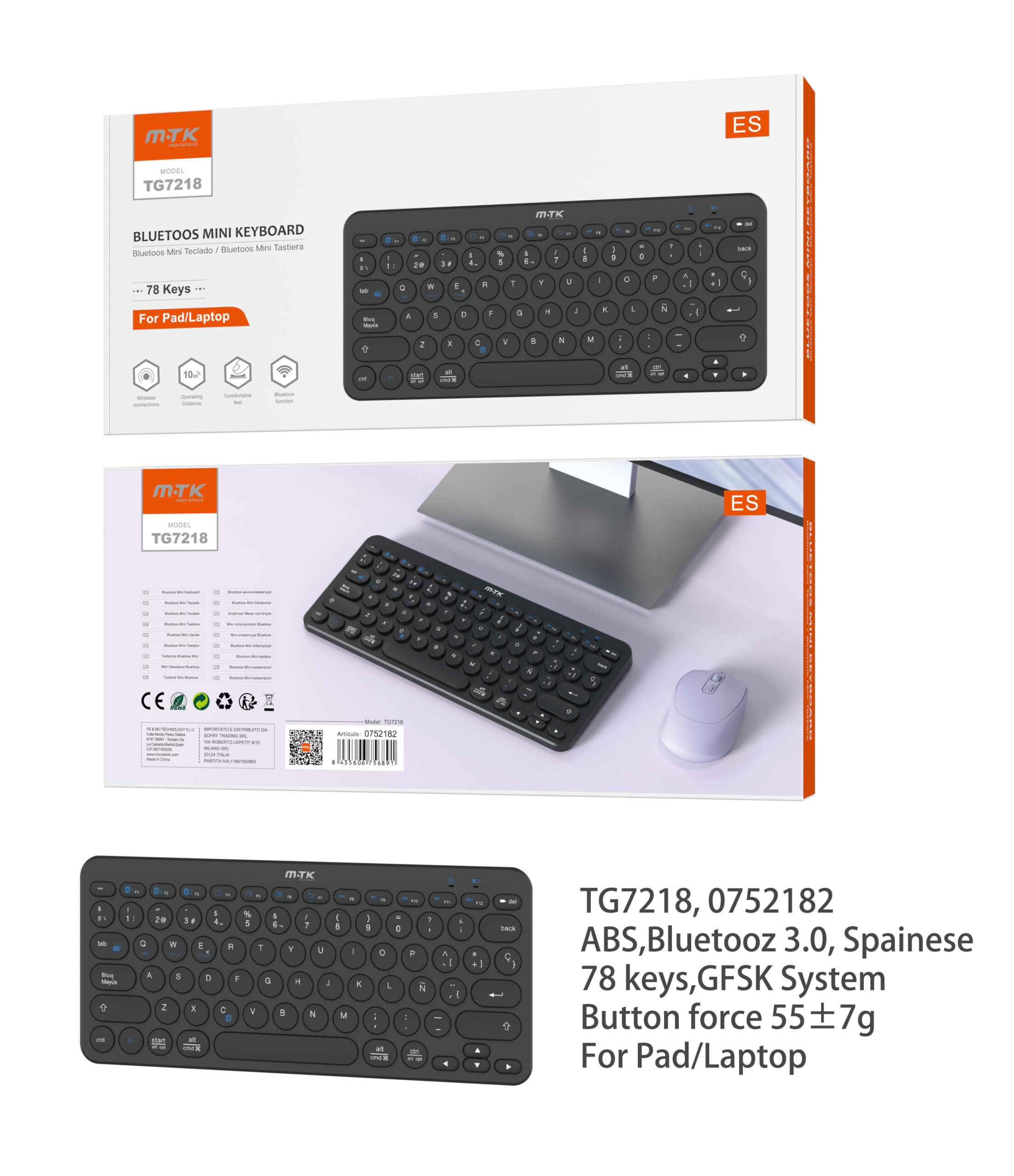 TG7218 NE Mini Teclado  Espanol ,  inalambrico Bluetooth , Con 78 Keys , Negro