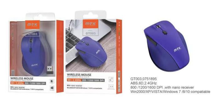 • GT707 AZ Ratón Inalámbrico Marte 2,4GHZ, 800/1200/1600 DPI, Azul