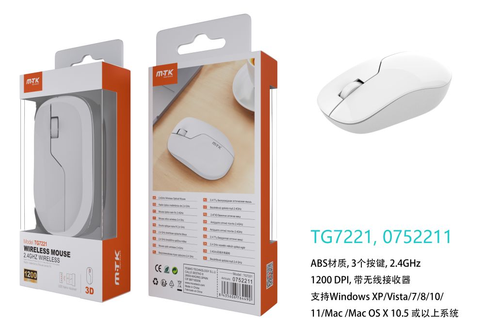 TG7221 BL Raton Inalambrico 3D 2.4GHZ, 1200 DPI, Blanco