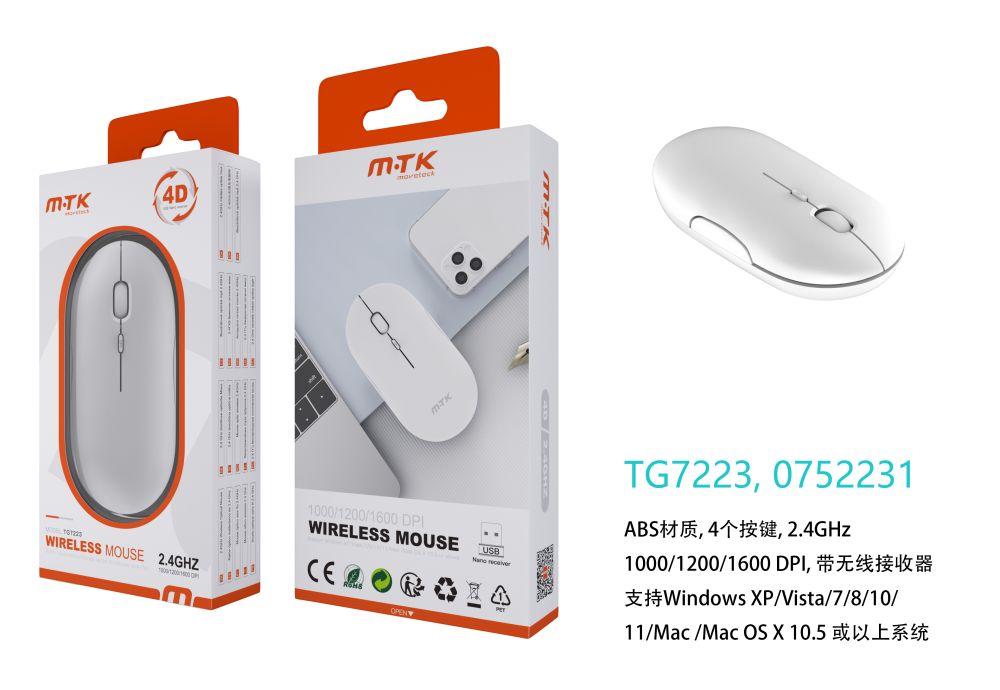 TG7223 BL Luxury Raton Inalambrico 4D 2.4GHZ, 1000/1200/1600 DPI, Blanco