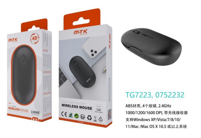 TG7223 NE Luxury Raton Inalambrico 4D 2.4GHZ, 1000/1200/1600 DPI, Negro