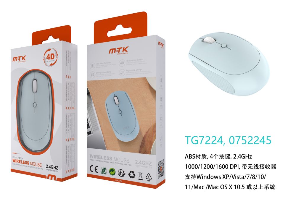 TG7224 AZ Luxury Raton Inalambrico 4D 2.4GHZ, 1000/1200/1600 DPI, Azul