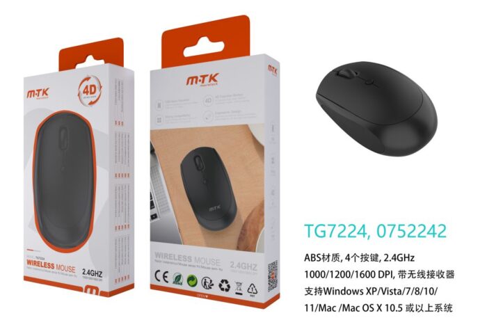TG7224 NE Luxury Raton Inalambrico 4D 2.4GHZ. 1000/1200/1600 DPI. Negro
