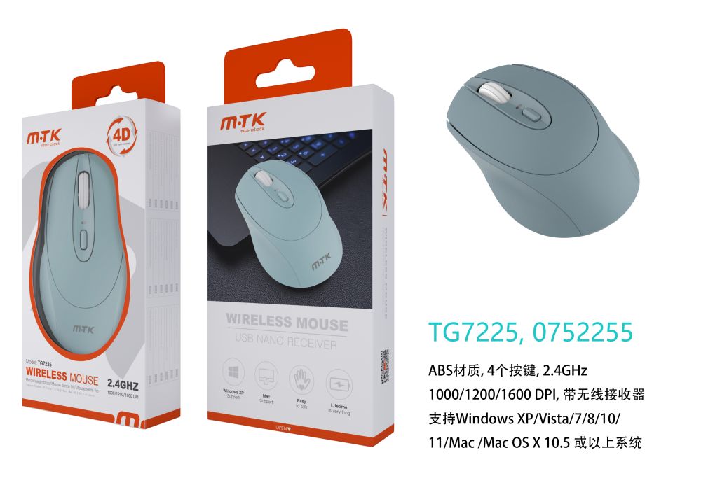 TG7225 AZ Luxury Raton Inalambrico 4D 2.4GHZ, 1000/1200/1600 DPI, Azul