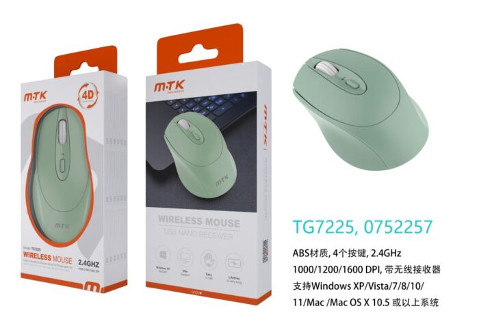 TG7225 VE Luxury Raton Inalambrico 4D 2.4GHZ, 1000/1200/1600 DPI, Verde
