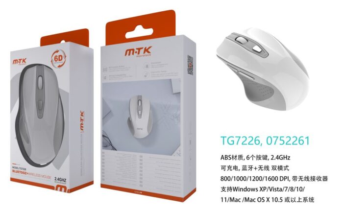 TG7226 BL Luxury Raton 6D 2 en 1 Inalambrico 2.4GHZ +bluetooth 5.0, 800/1000/1200/1600 DPI, Bateria Recargable 400 mAh, Blanco