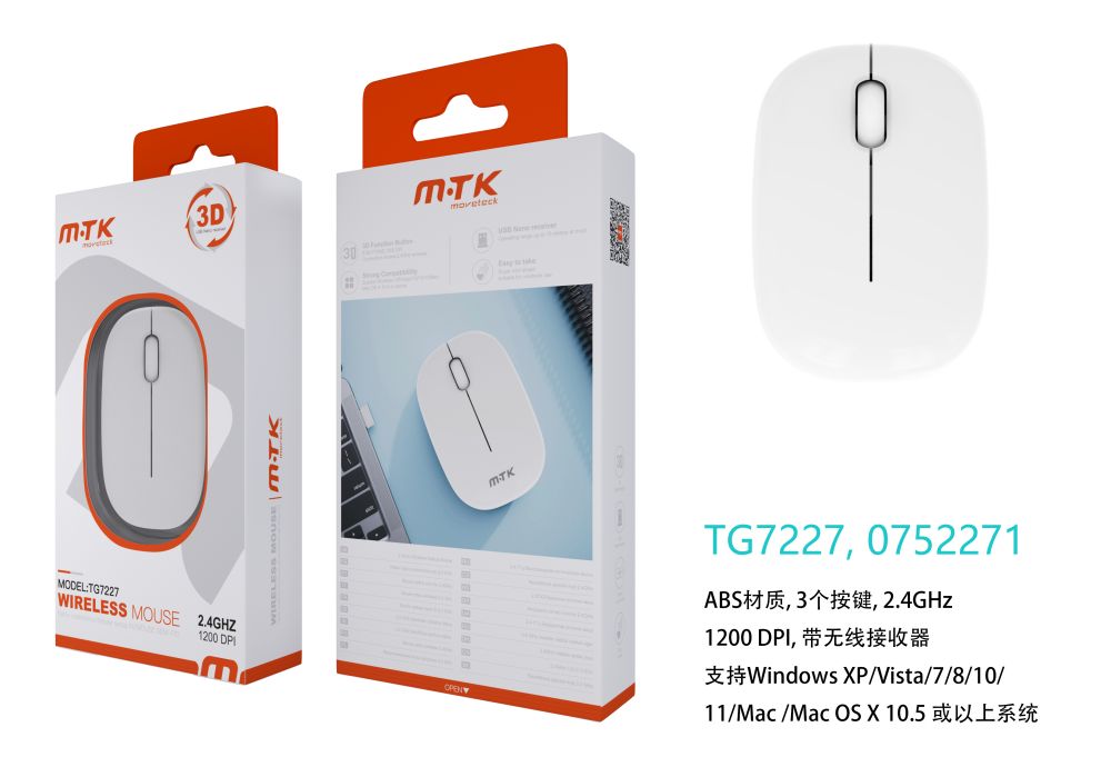 TG7227 BL Luxury Raton Inalambrico 3D 2.4GHZ, 1200DPI, Blanco