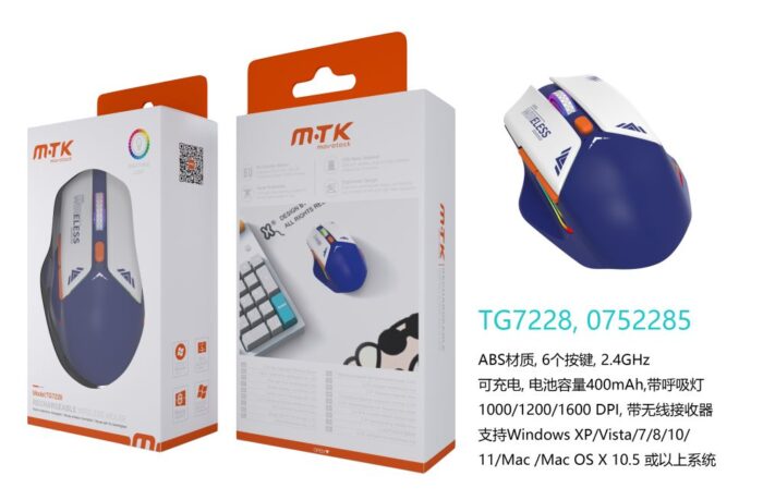 TG7228 BL+AZ Luxury Raton Inalambrico 6D con Respiracion de Luz 2.4GHZ, 1000/1200/1600 DPI, Bateria 400mAh Recargable , Blanco+Azul