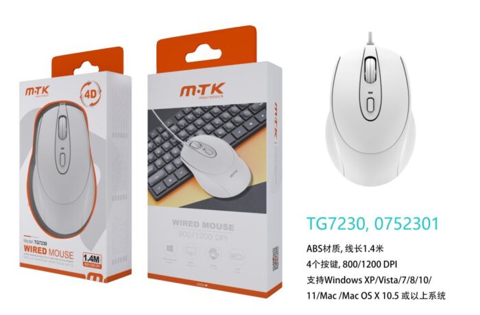 TG7230 NE Luxury Raton Con Cable 4D, 800/1200 DPI, 1.4M, Negro