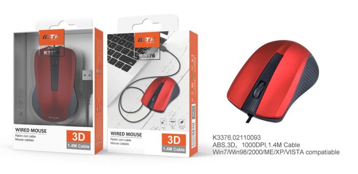 • K3376 RJ Ratón Óptico Mage con cable Rojo