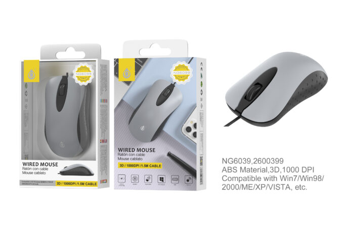 • NG6045 NE Raton optico Cleo con cable,1000 DPI ,1,35M Negro