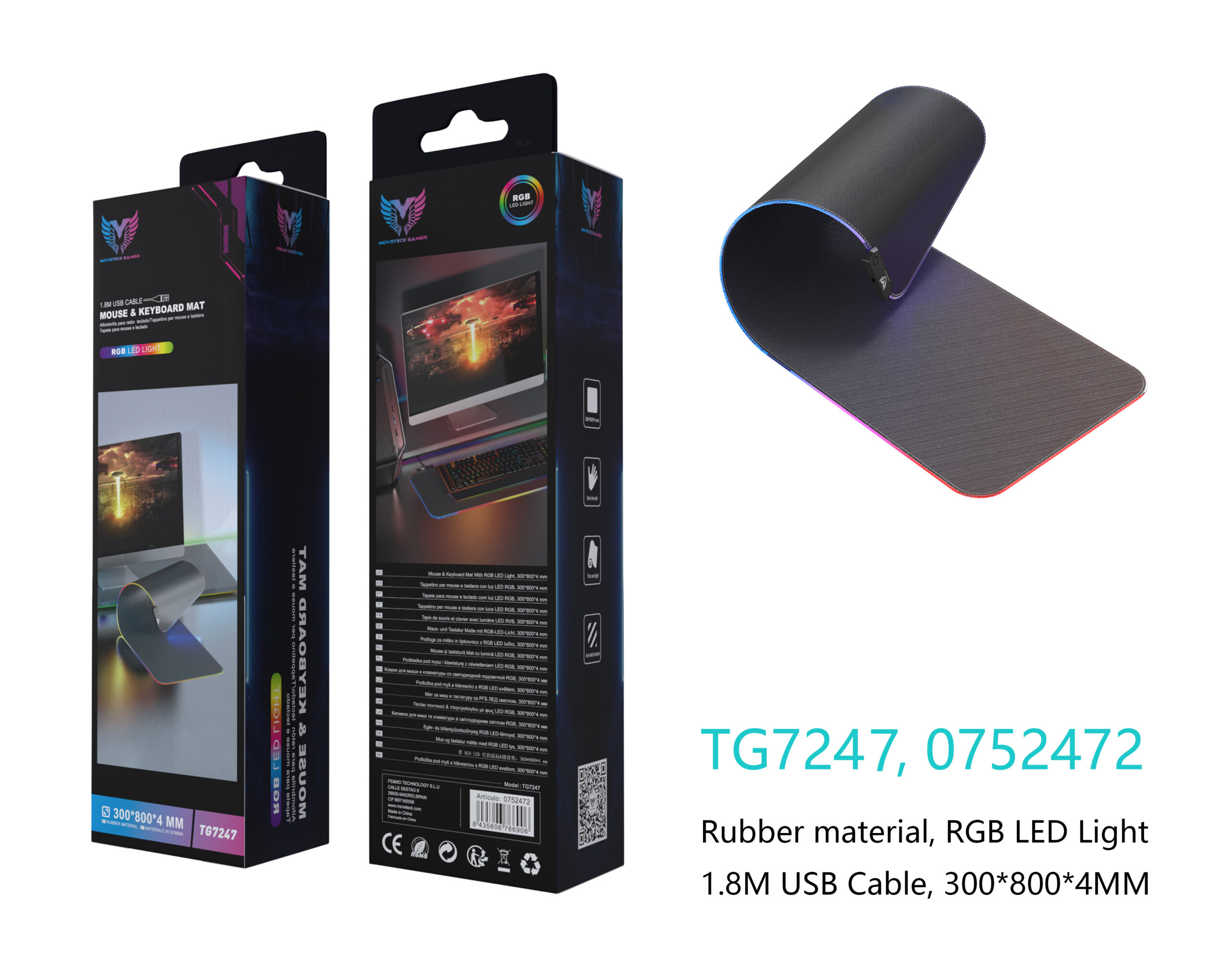 TG7247 NE Alfombrilla Gaming para Teclado y Raton con Luz RGB, 300*800*4mm, Cable USB 1.8M, Negro