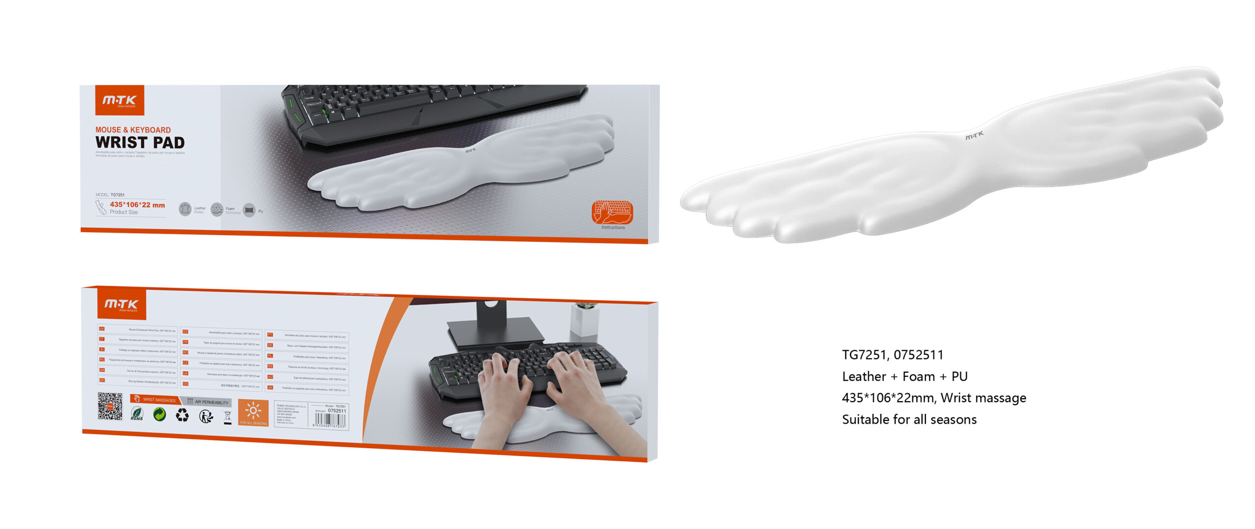 TG7251 BL ReposamuNecas para Teclado 435*106*22mm, Blanco