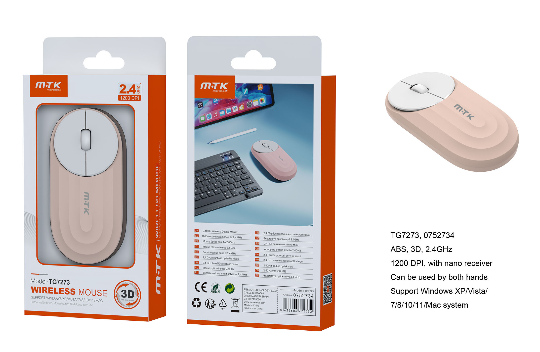 TG7273 RS Ratón Inalámbrico 2.4G Shell con 1200 DPI, batería AA (no incluida), Rosa