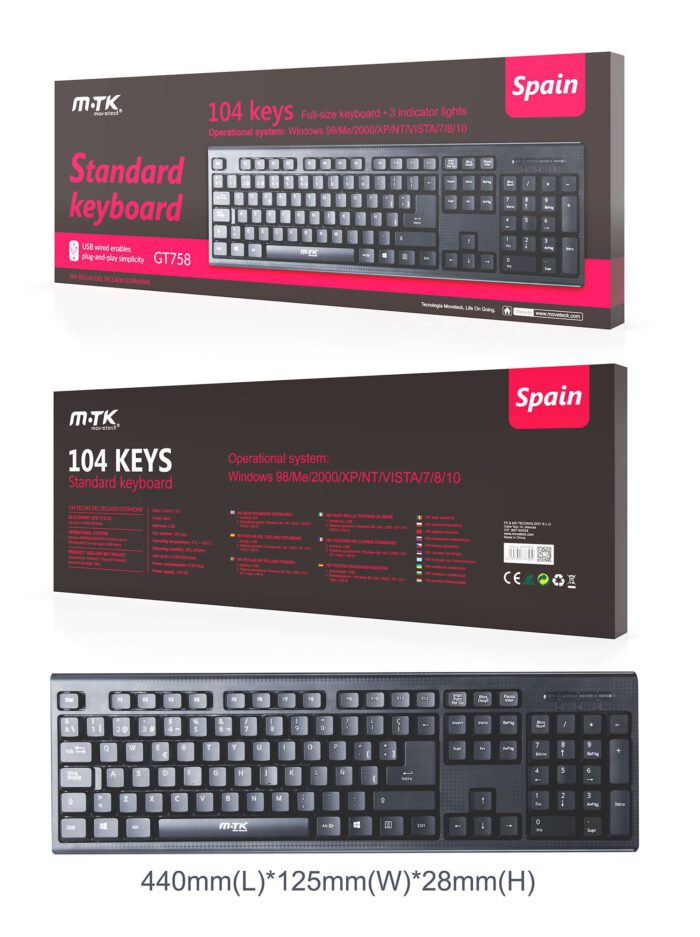 • GT758 Teclado M.TK 104 Keys Espanol, Negro